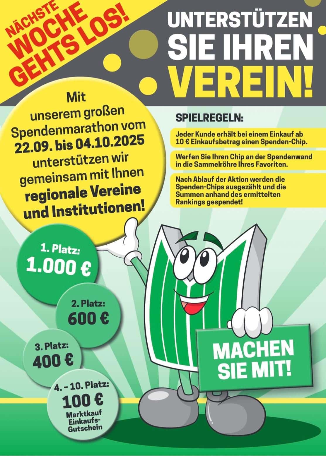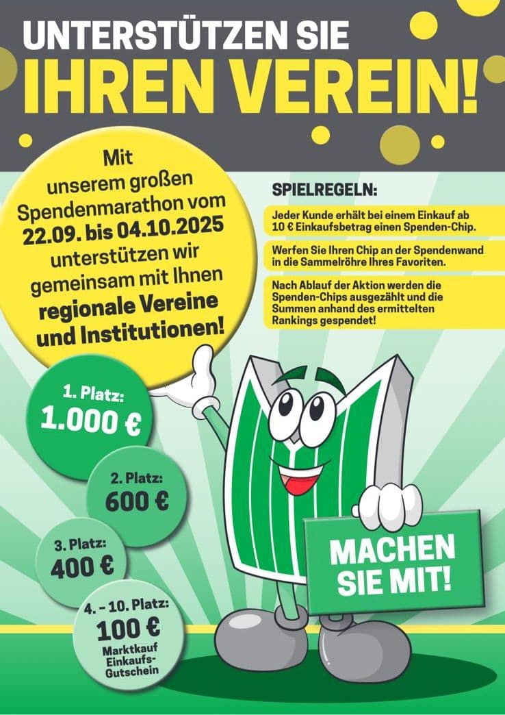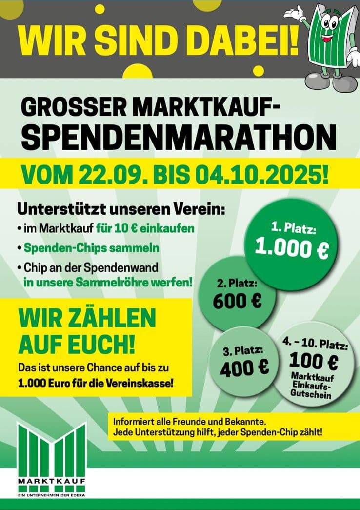 Der Förderverein unserer Schule lädt alle Familien, Freunde und Unterstützer herzlich ein, ab der kommenden Woche eine tolle Gelegenheit zu nutzen, unseren Verein direkt zu fördern. Vom 22. September bis 04. Oktober 2025 nehmen wir am großen Marktkauf-Spendenmarathon teil – und hier zählt wirklich jede Unterstützung!